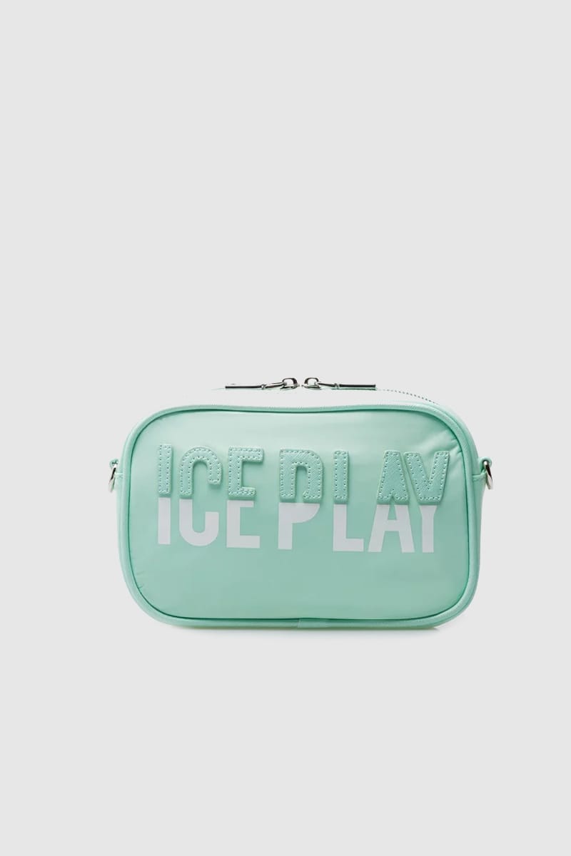 Τσαντάκι cross over ICE PLAY σε βεραμάν ανοιχτό χρώμα, με λευκό logo print μπροστά. Κλείνει με αμφίδρομο φερμουάρ. Διαθέτει 2 αποσπώμενους/ρυθμιζόμενους ιμάντες χιαστί. Εσωτερικά 1 τσέπη με φερμουάρ και 1 τσέπη χωρίς κλείσιμο. Τα μεταλλικά στοιχεία είναι σε ασημί χρώμα. Διαστάσεις: 22x5x16cm.