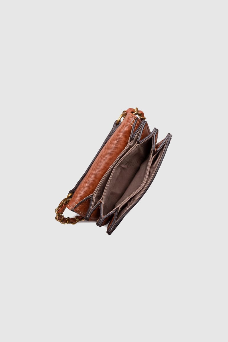 Guess Γυναικείο Mini Τσαντάκι Χιαστί Card Holder από οικολογικό δέρμα Saffiano σε ταμπά χρώμα. Γυναικείο mini τσαντάκι διαθέτει τέσσερα κύρια διαμερίσματα και ιμάντα ώμου με αλυσίδα. Επεξεργασία saffiano και μεταλλικό λογότυπο Guess στο μπροστινό μέρος. Κλείσιμο με μαγνητικό clip.