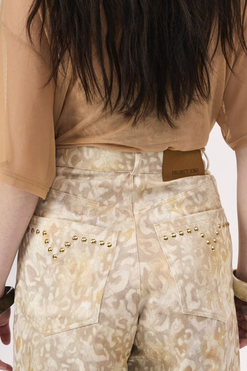 Το PROJECT SOMA Derya Pants κατασκευάζεται από bul denim βαμβακερό ύφασμα με ιδιαίτερο λεοπαρ τύπωμα και διακοσμητικά μεταλλικά στοιχεία. Loose fit baloon παντελόνι.