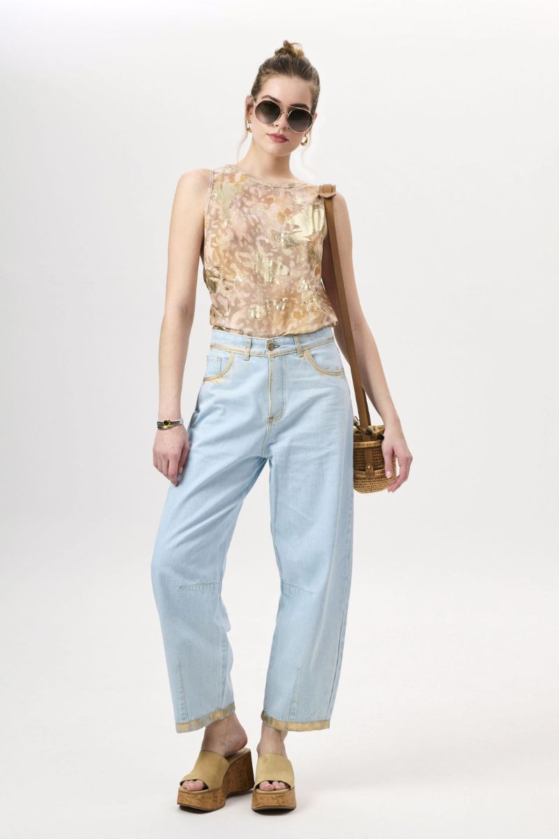 Το PROJECT SOMA Guava Top κατασκευάζεται από τούλινο ελαστικό ύφασμα, με ιδιαίτερο τύπωμα και λεπτομέρειες λάμψης. Tank top σε χαλαρή γραμμή.