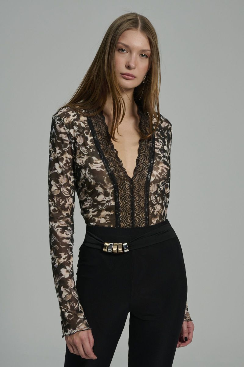 Το PROJECT SOMA Orietta Floral Bodysuit κατασκευάζεται από τούλινο ελαστικό ύφασμα. Κορμάκι με λεπτομέρεια δαντέλα.
