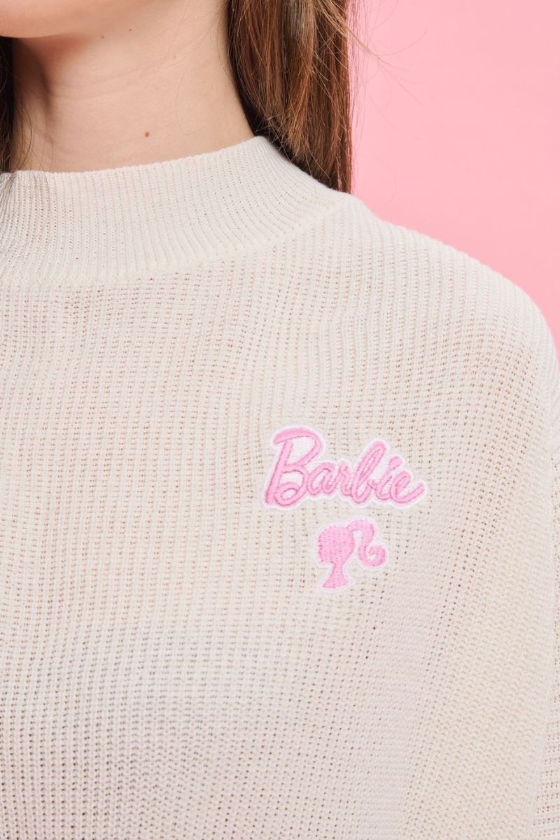 Το Barbie X PROJECT SOMA Becoming Off-White Sweater κατασκευάζεται από απαλό, πλεκτό νήμα. Oversized πουλόβερ με ιδιαίτερη λαιμόκοψη και κέντημα στο στήθος.
