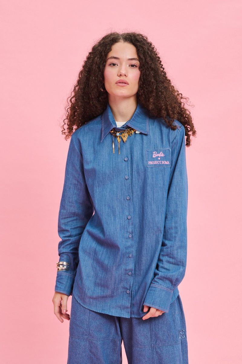 Το Barbie X Project Soma Together Shirt κατασκευάζεται από μαλακό βαμβακερό denim ύφασμα. Πουκάμισο σε ίσια γραμμή με ροζ λεπτομέρειες γαζιών.